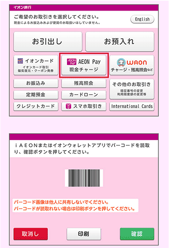 イオン銀行ATMでチャージ