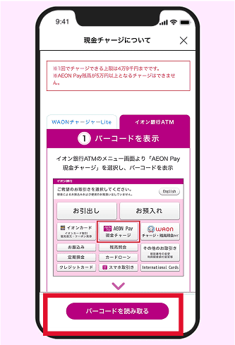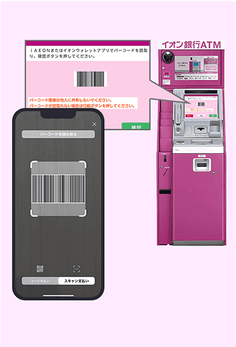 イオン銀行設置のATMからでも現金のチャージが可能です。