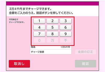※チャージ(入金)は、1回につき最大49,000円(入金額の上限が20,000円のカードは1回最大20,000円)まで可能です。