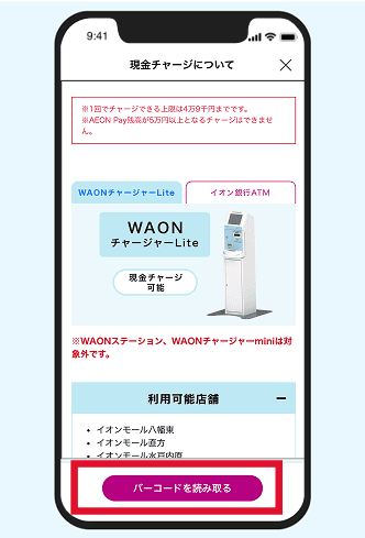 WAONタッチ残高へのチャージ