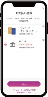 下記の手順で銀行口座の登録を行うと、AEON Payのご利用が可能になります。