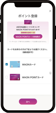 コード決済の登録後は、WAONを新規発行またはWAONを紐づけします