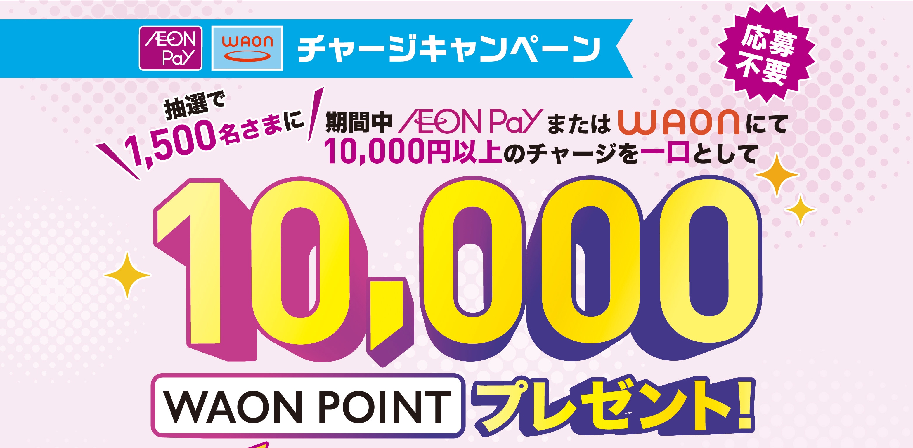- AEON PayのWAONタッチ残高へのチャージは対象外です。