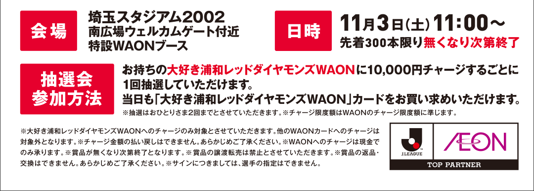 <11/3(土)>浦和レッズ WAONチャージ抽選会