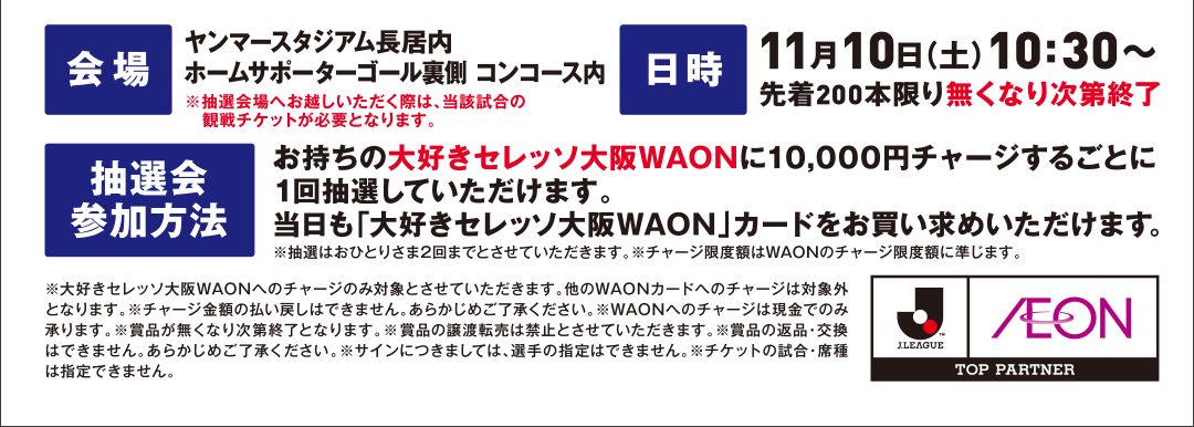 <11/10(土)>セレッソ大阪 WAONチャージ抽選会