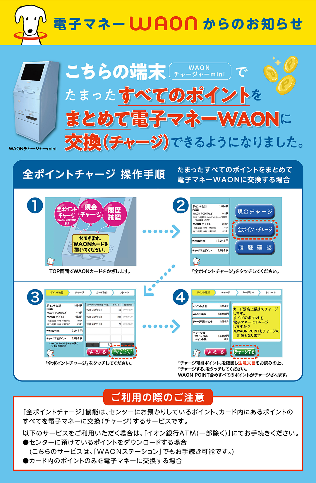 「WAONチャージャーmini」で全ポイントチャージが出来るようになりました