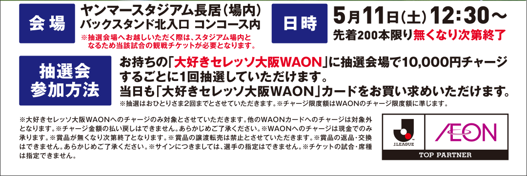 <5/11(土)>セレッソ大阪 WAONチャージ抽選会