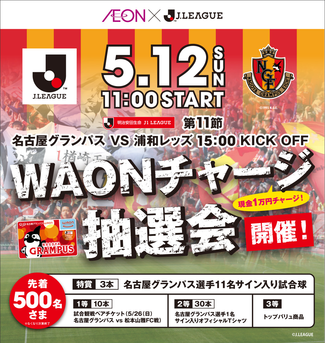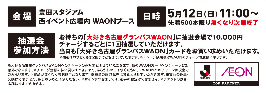 <5/12(日)>名古屋グランパス WAONチャージ抽選会