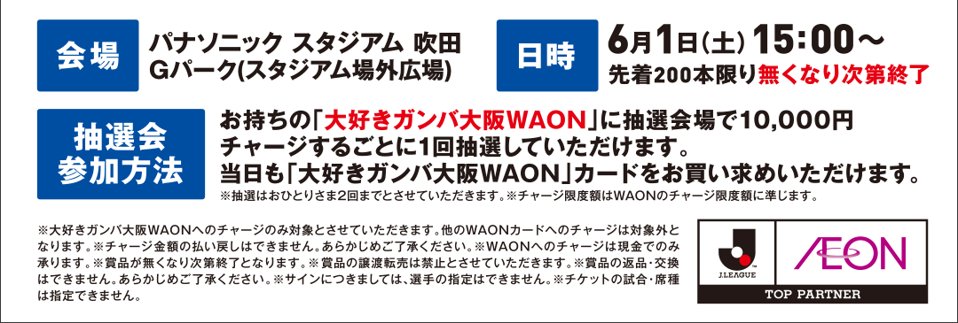 <6/1(土)>ガンバ大阪 WAONチャージ抽選会