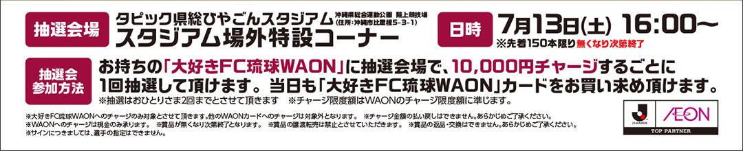 <7/13(土)>FC琉球 WAONチャージ抽選会