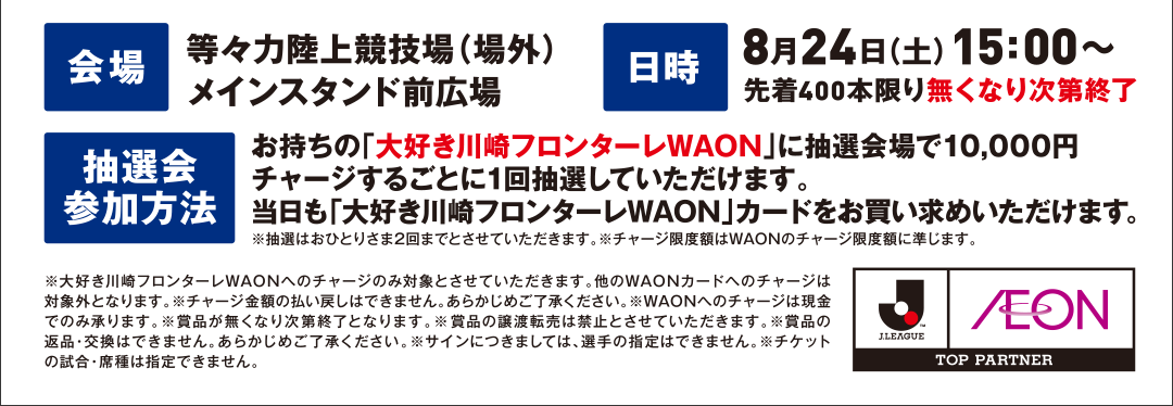<8/24(土)>川崎フロンターレ WAONチャージ抽選会
