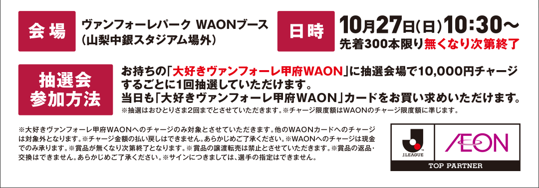 <10/27(日)>ヴァンフォーレ甲府 WAONチャージ抽選会