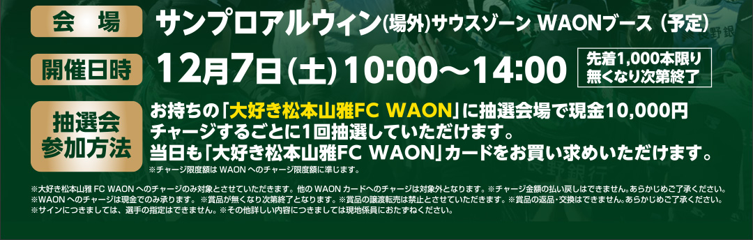 <12/7(土)>松本山雅FC WAONチャージ抽選会