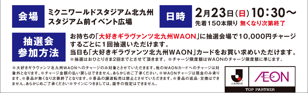 <2/23(日)>ギラヴァンツ北九州 WAONチャージ抽選会