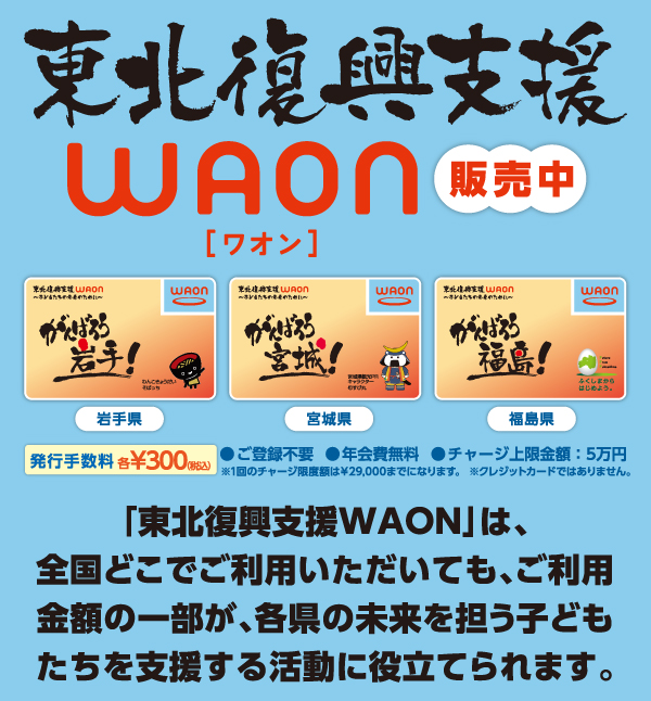 「東北復興支援WAON」は、東北への復興支援にご参加いただくことができます。