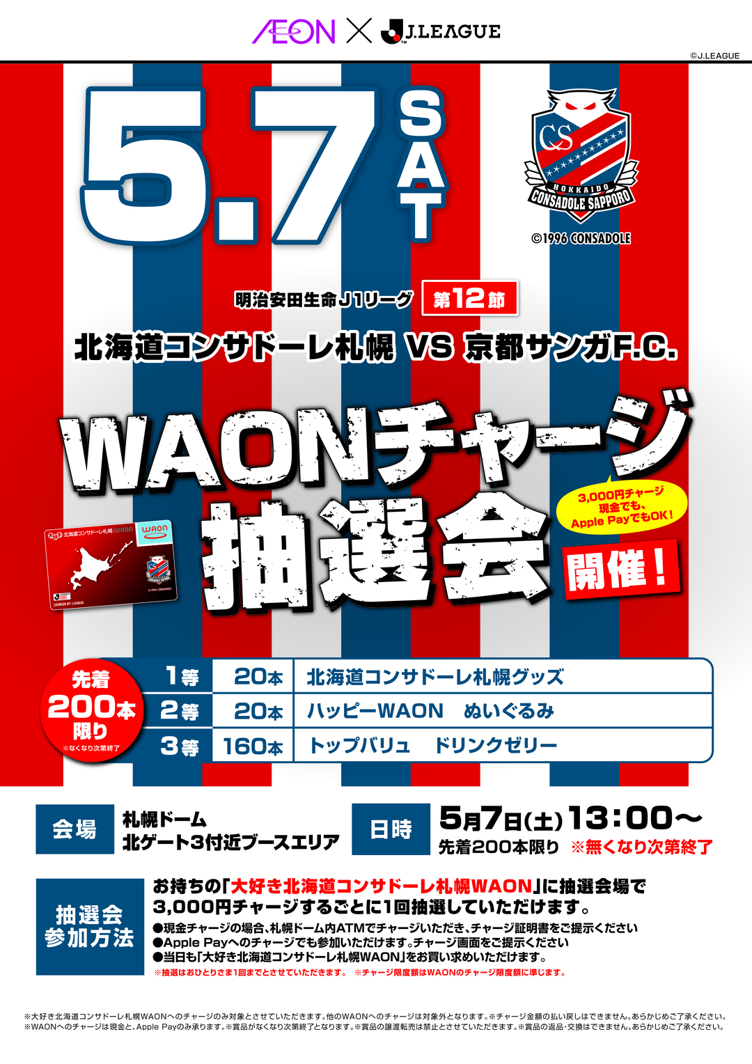 <終了>北海道コンサドーレ札幌 WAONチャージ抽選会