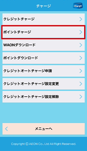 2.「ポイントチャージ」を選択します。