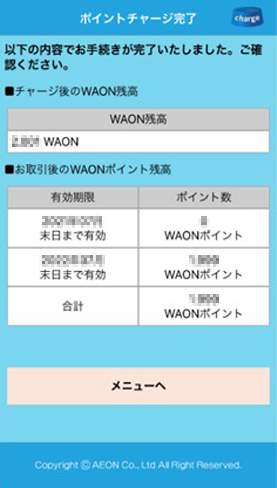 9.ポイントチャージが完了しました。