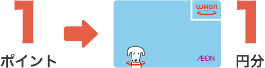たまったポイントは1ポイントごとに、1円分のWAONに交換してお買物にご利用いただけます。