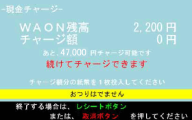 2.WAON残高とチャージ可能金額が表示されますので、紙幣を投入します。