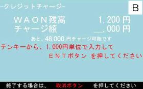 任意設定を選択した場合、左のBの画面が表示されますので、テンキーでチャージ金額を入力し、【ENT】ボタンを押します。