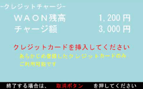 3.金額を設定したら、左の画面が表示されますので、クレジットカードをクレジットカード挿入口に挿入します。